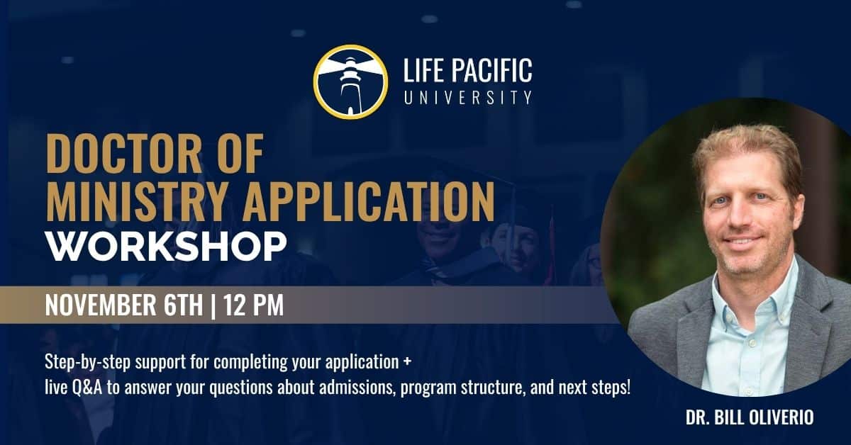 Join Dr. Bill Oliverio for our Doctor of Ministry (DMin) Application Workshop! This interactive session will guide you through the DMin program at Life Pacific Seminary, provide step-by-step support for completing your application, and include a live Q&A to answer your questions about admissions, program structure, and next steps.