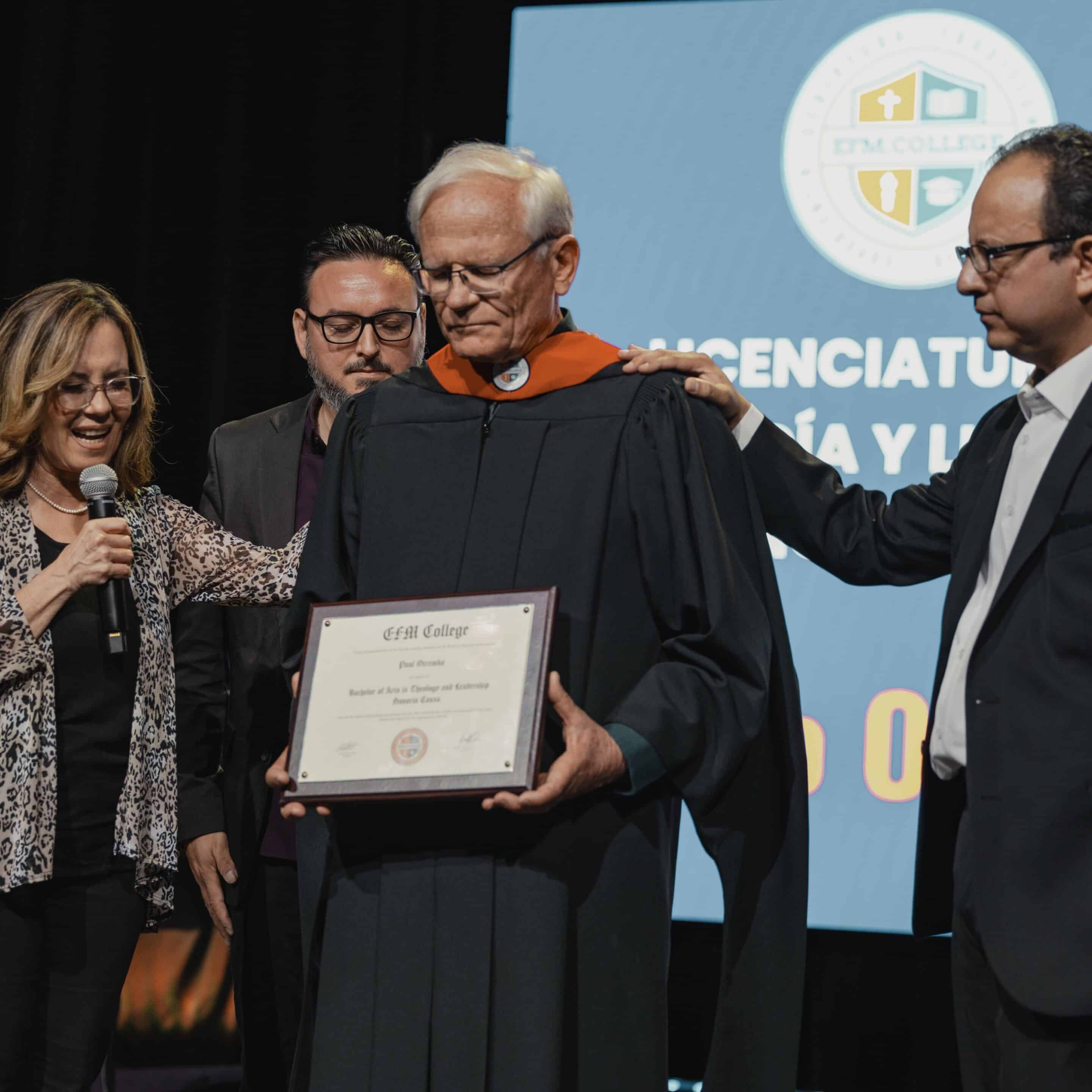 The Cumbre de Liderazgo was a phenomenal event. It was a time full of praise and worship, where the song “Tu Memoria” was launched by one of our students, Onésimo Coa. The worship team was comprised musicians and performers from several Foursquare churches. At the end, we had a keynote lecture with Dr. Estrada Carrasquillo. We took the opportunity to thank God for Dr. Daniel Ruarte, founder of the master’s degree in Spanish. Dr. Enrique Zone was also recognized for his career as a Foursquare educator.